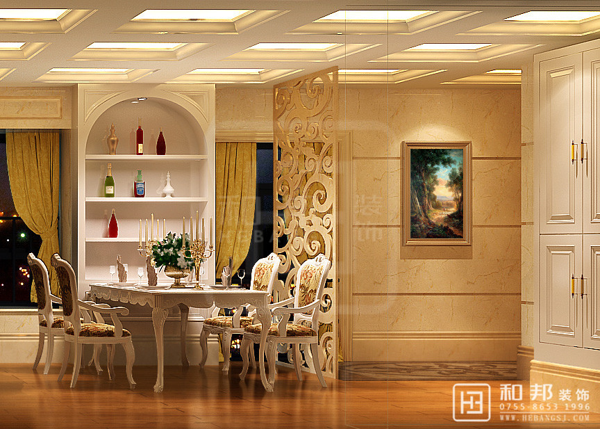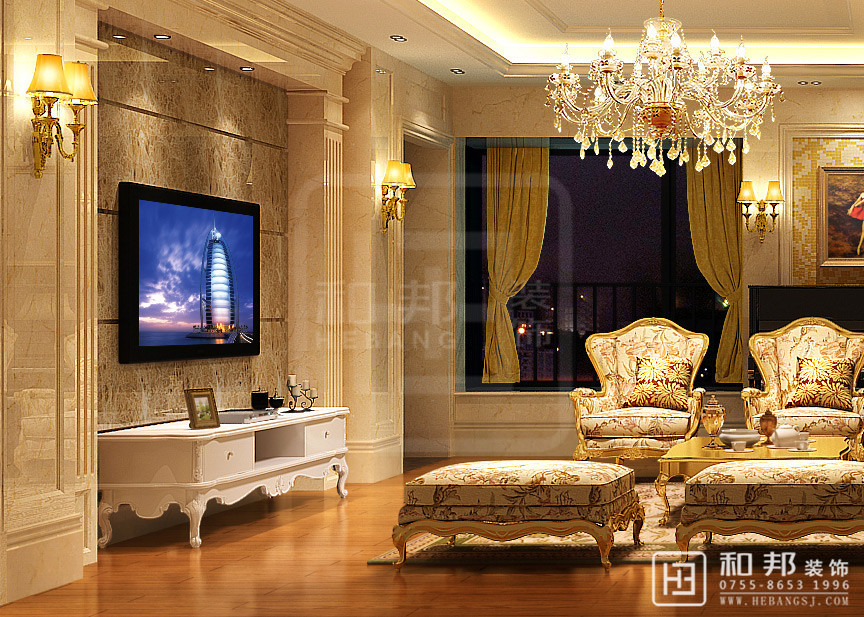 本設計為典型的美式風格,豪華大氣,尊貴典雅,簡潔的設計,空曠的視野,讓人樂在其中。整個空間氣息以歐式的高貴優雅氛圍為主題,用現代的設計手法表現。