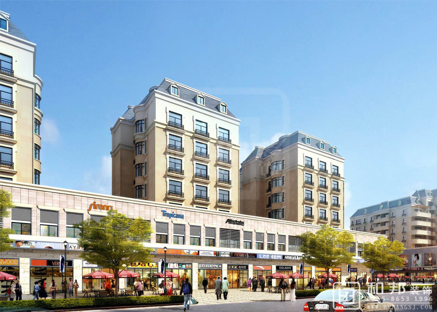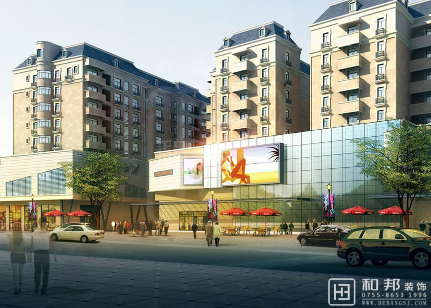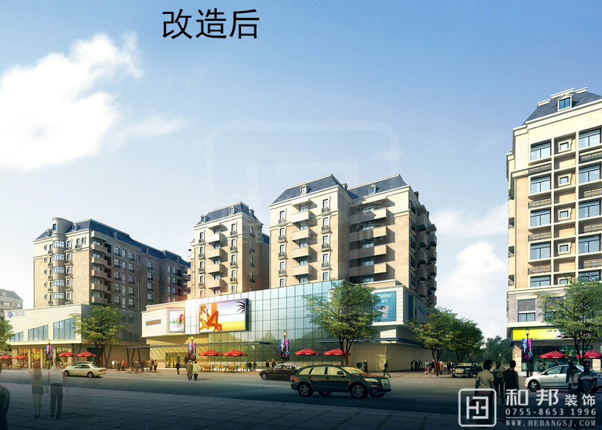 本設計把小區(qū)樓下變成了商業(yè)休閑區(qū),小區(qū)的樓統(tǒng)一了外觀,給人一種整潔,舒服的感覺。